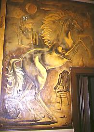 pesante intervento di ristrutturazione nel secondo dopoguerra. L'edificio ben si inseriva nel contesto vagamente "liberty" di Piazzale Bertacchi, con caratteri più facili ed immediati che non in altri esempi quali la casa dello scultore Gunella progettato dall'ing. Filippo Orsatti sul lato sinistro della piazza, di cui peraltro rimane solo la parte centrale. All'interesse della costruzione si aggiunge la presenza nell'atrio di una parete divisoria dipinta sulle due facce dal pittore trentino Livio Benetti negli anni '50: opera che presenta, per certi versi, caratteri di atipicità nella vasta e multiforme produzione dell'artista. Sul fronte spicca, per vigore e plasticità l'immagine a tutta altezza di un cavallo in un paesaggio di sapore quasi metafisico, che condensa alcuni temi, quali una testa "classica", costruzioni e rovine, figure indefinite, oggetti con dimensione propria, isolati ciascuno dal contesto con ombre innaturali in un equilibrio faticosamente raggiunto dalla composizione. Sul retro lo stesso Benetti ha dipinto un soggetto naturalistico di più modeste dimensioni, quasi un bozzetto non finito. Data l'imminenza delle operazioni di demolizione dell'edificio, il Museo Valtellinese di Storia e Arte, con la collaborazione degli attuali proprietari, ha predisposto un progetto di recupero dei due dipinti; lo stacco verrà eseguito a giorni dal restauratore professionista Luigi Parma di Milano, specializzato nel settore degli affreschi. L'intervento, estremamente complesso per la fragilità della pellicola pittorica e per il precario stato di conservazione del supporto comporterà dei costi non indifferenti. Le opere dovrebbero essere, a restauro ultimato, esposte presso la pinacoteca di arte contemporanea del nostro museo cittadino. |