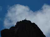 Alpinista sulla cima del Torrione di Mezzaluna in Val Gerola |