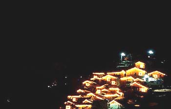 Foto notturna della contrada di Scilironi in Val Malenco